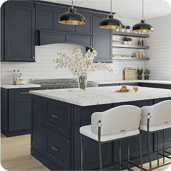 Get a free 3D kitchen design and expert consultation. Our dedicated specialists will guide you through our extensive RTA cabinet collection and help find the perfect solution for your space and budget. Experience samples at our local showroom.